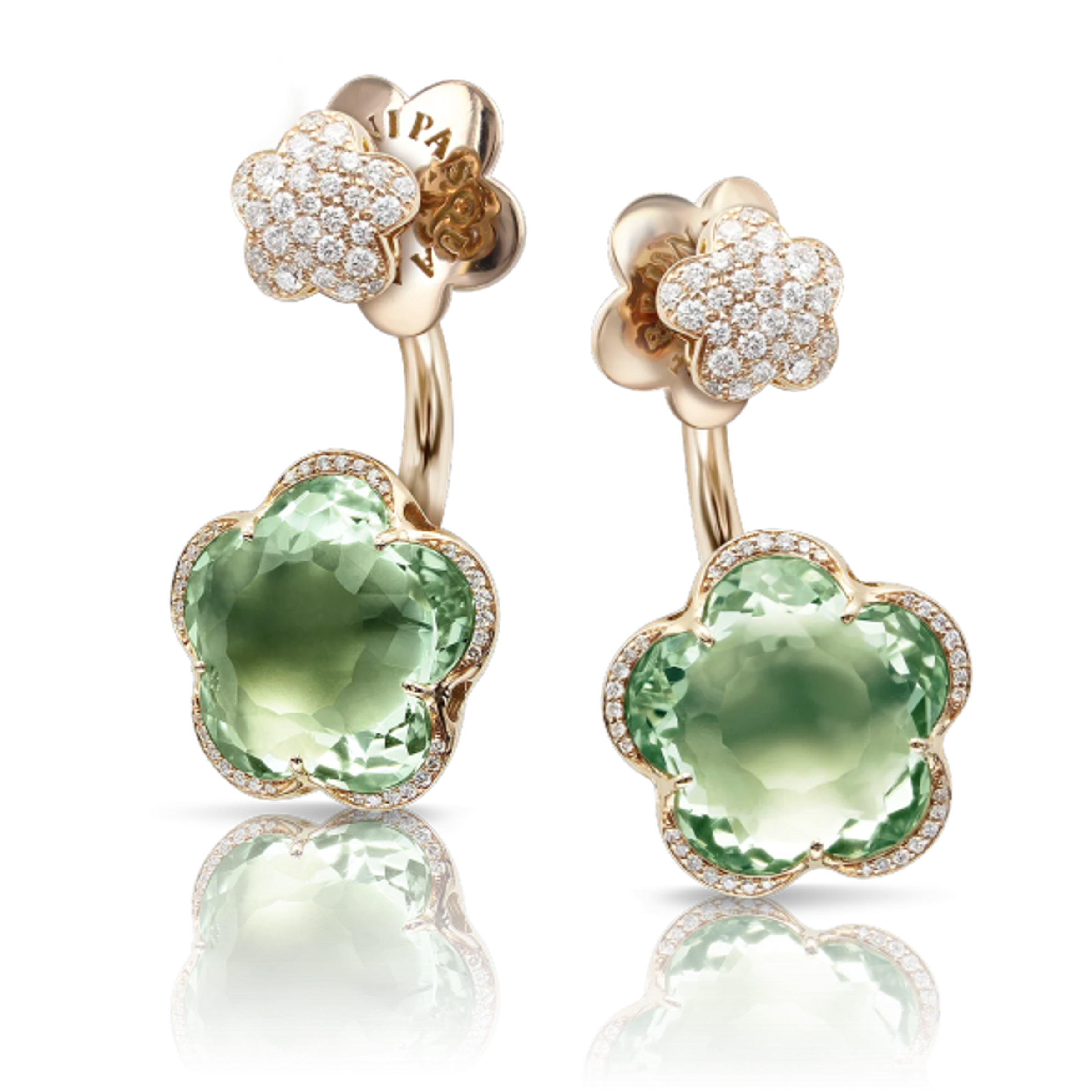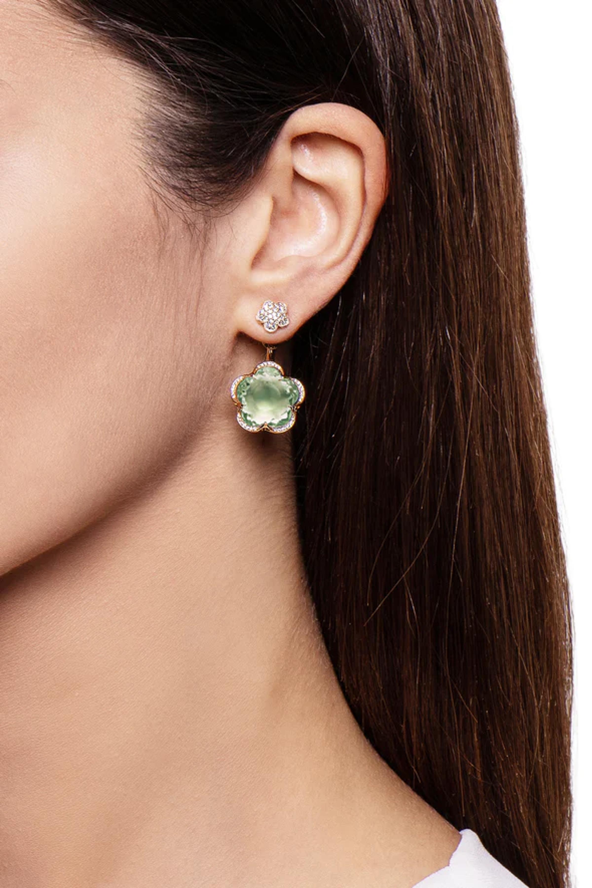 Серьги из розового золота 18K. Празиолит в форме цветка размером 14 мм. Общий вес бриллиантов - 0,58 карата.