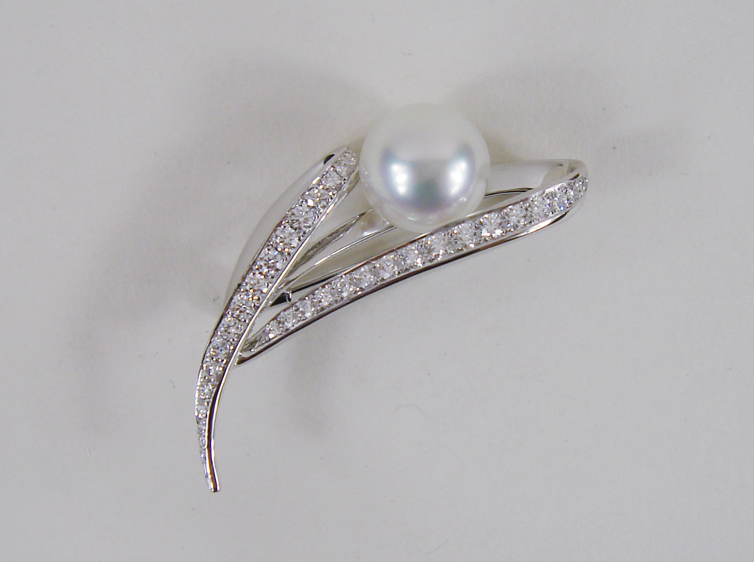Брошь из белого золота 18К и бриллиантов. Жемчуг White South Sea размером 12,49 мм A+.