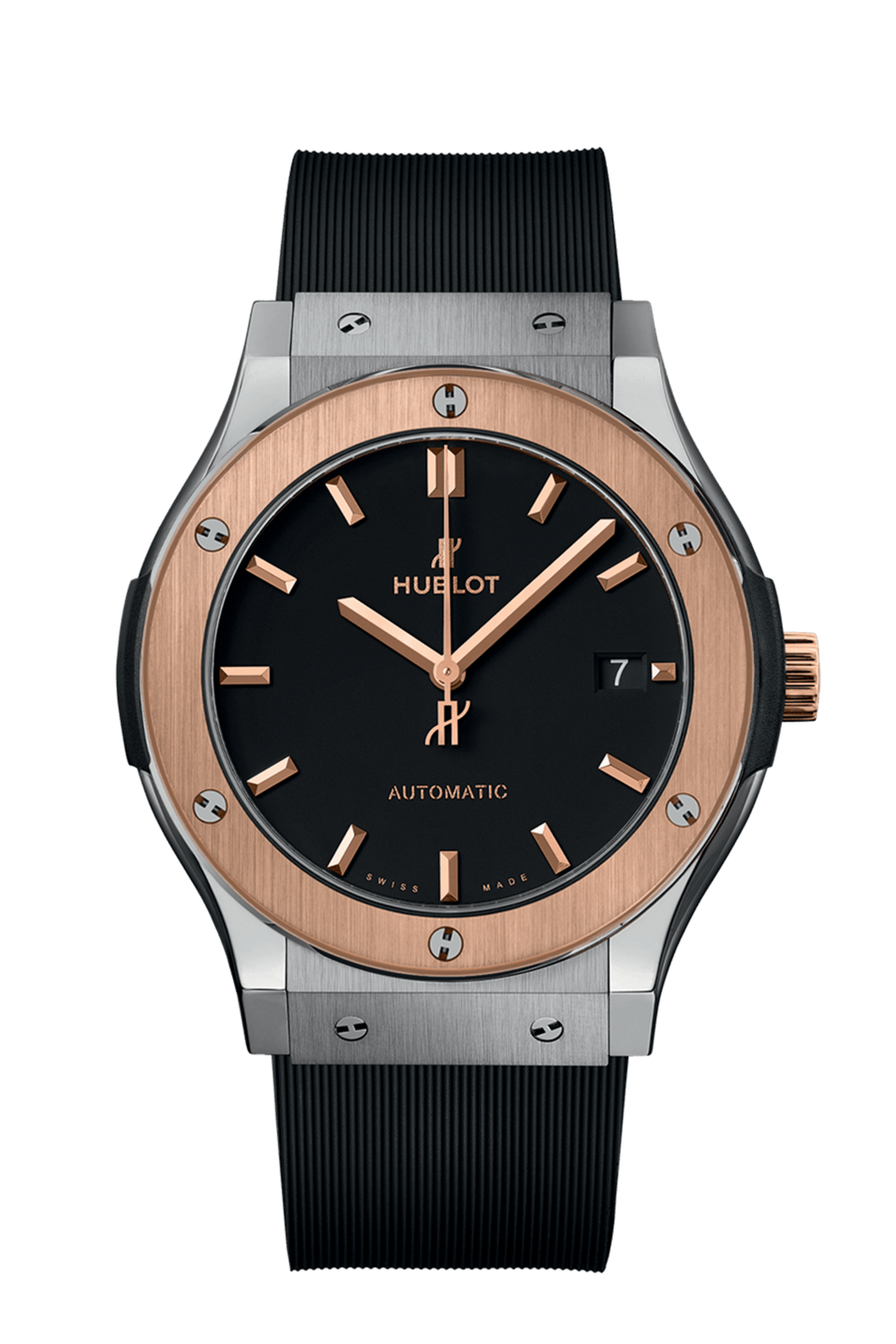 Мужские автоматические часы, корпус - титан, безель - золото 18K, 45 мм. Ремешок - каучук.