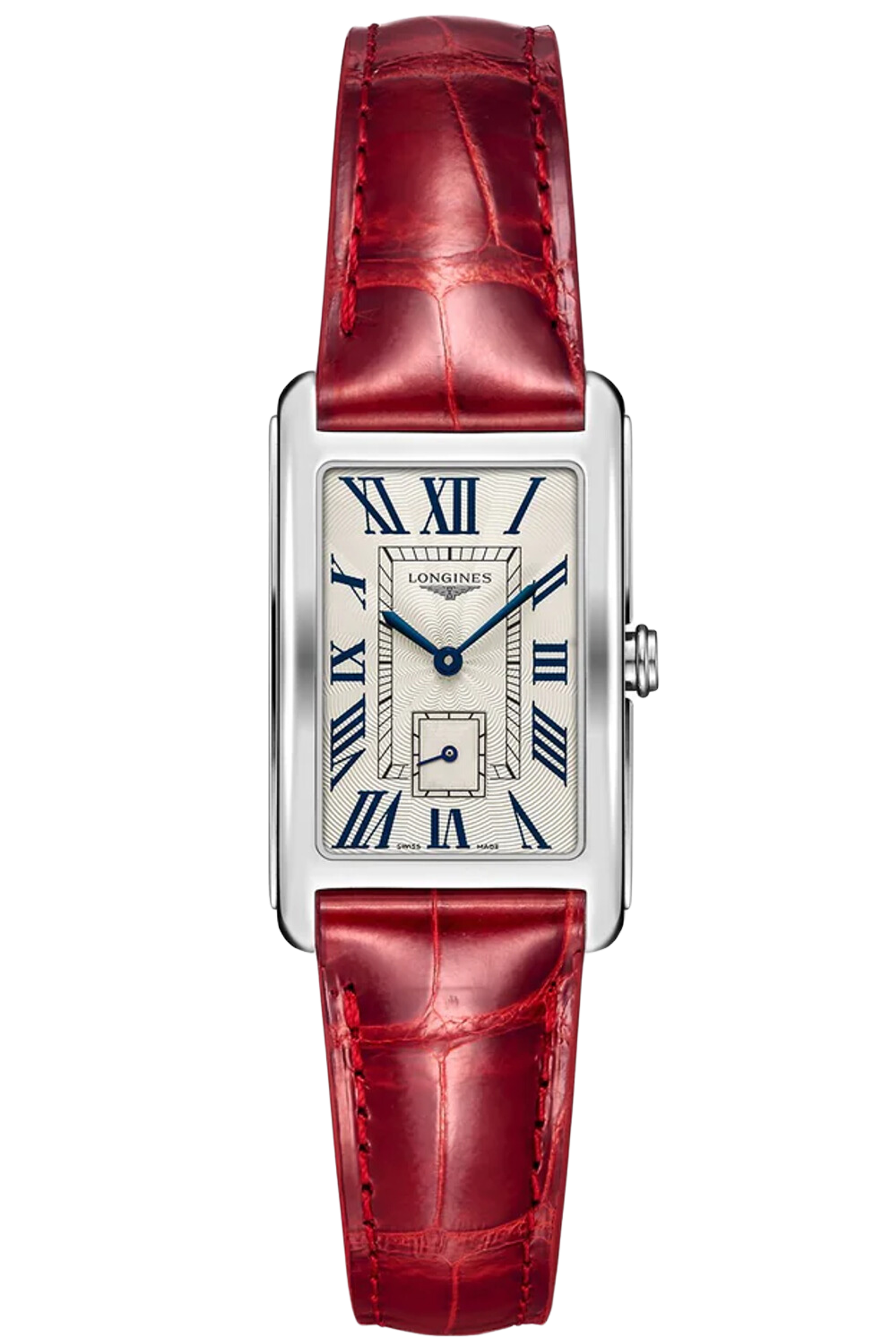 Женские кварцевые часы Longines, корпус – сталь, 20,8 x 32 мм. Ремешок – кожа аллигатора.