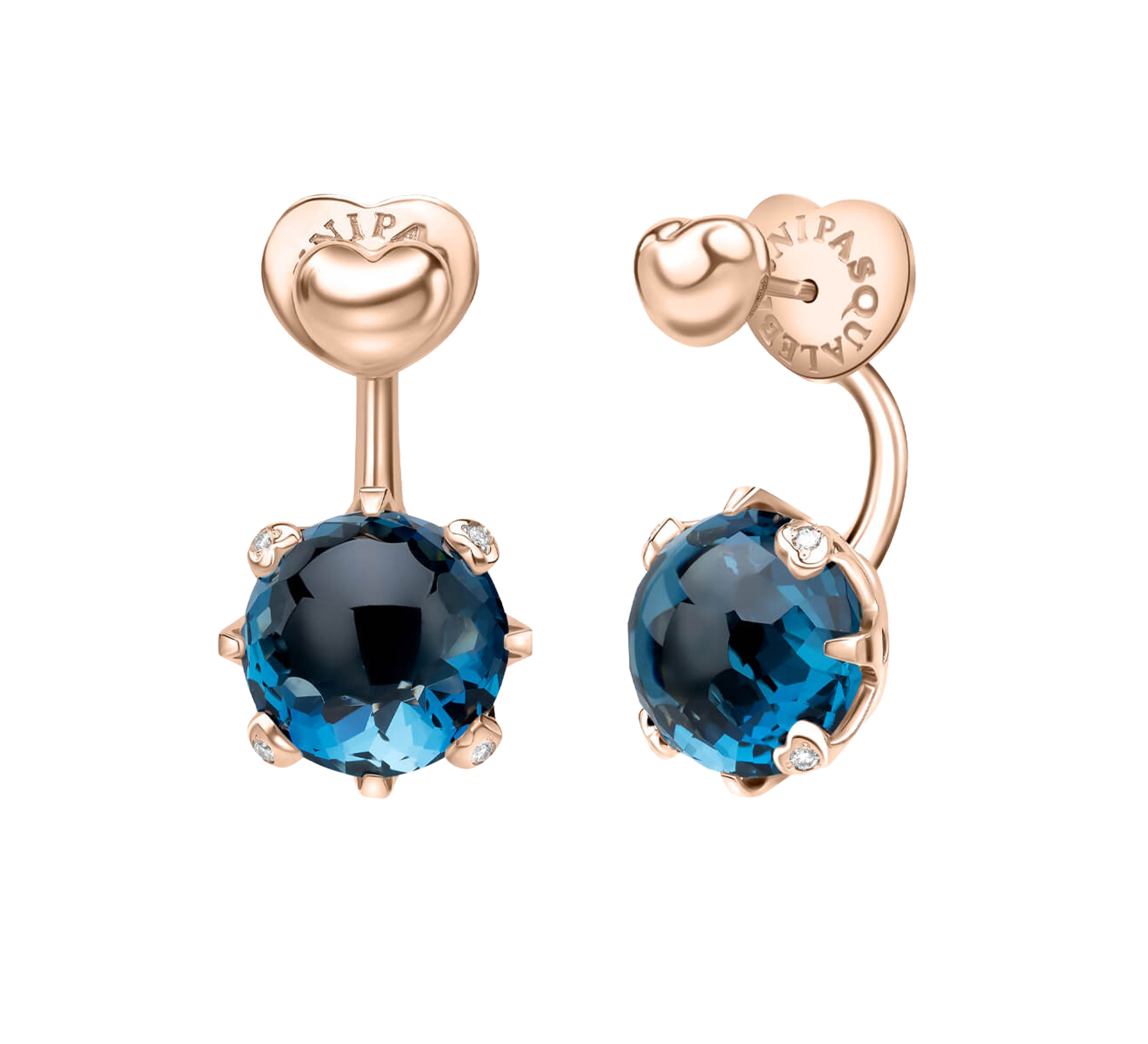 Серьги из розового золота 18K, лондонский голубой топаз размером 12 мм и бриллианты.