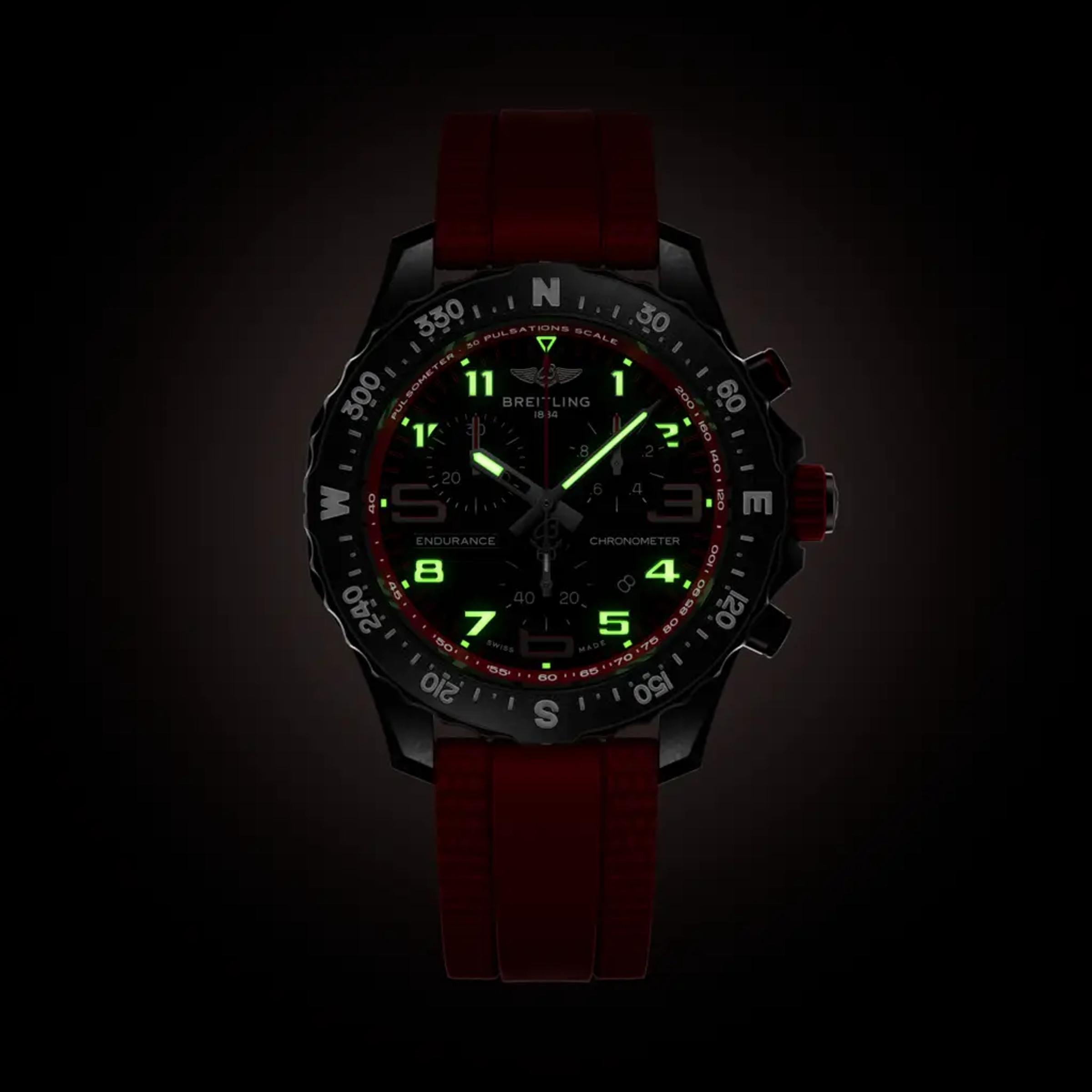 Особенности часовХронограф, Хронометр, Дата, Светящиеся цифры/индексы, Светящиеся стрелки, Вращающийся безель