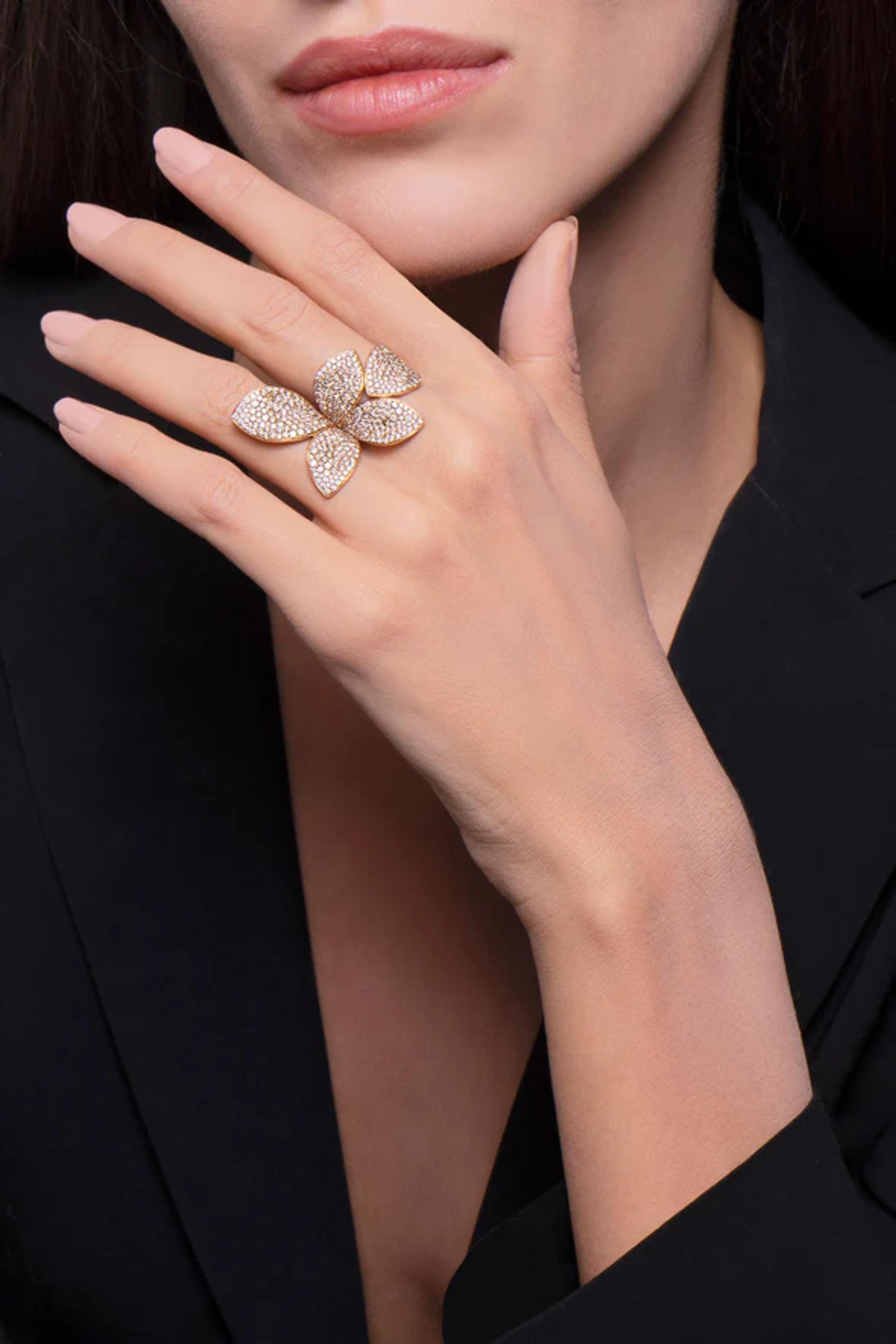 Кольцо из розового золота 18К. Алмазы: белые - 0,64 карата, шампань - 3,75 карата.