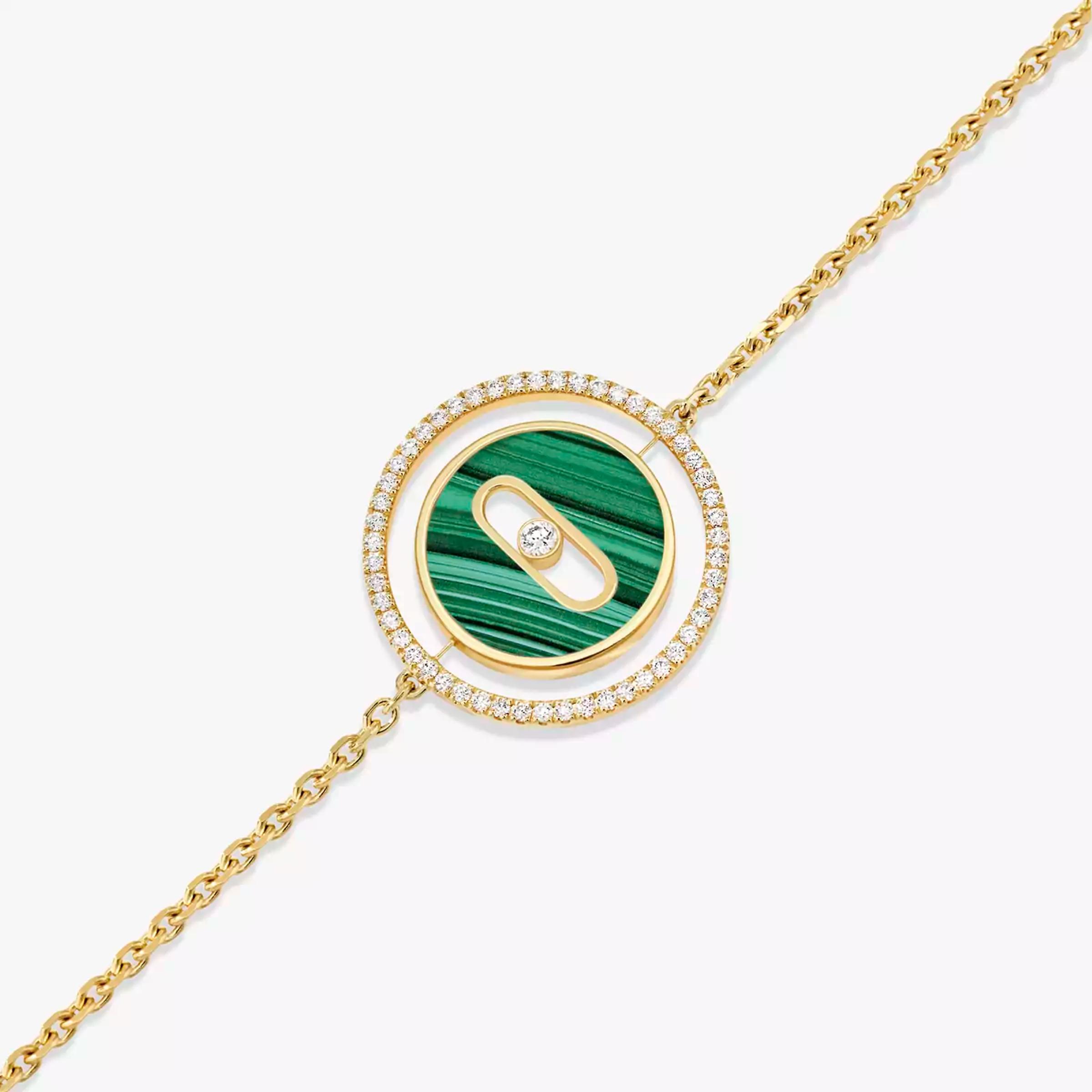 Браслет из желтого золота 18K и малахита. Общий вес бриллиантов составляет 0,18 карата.
