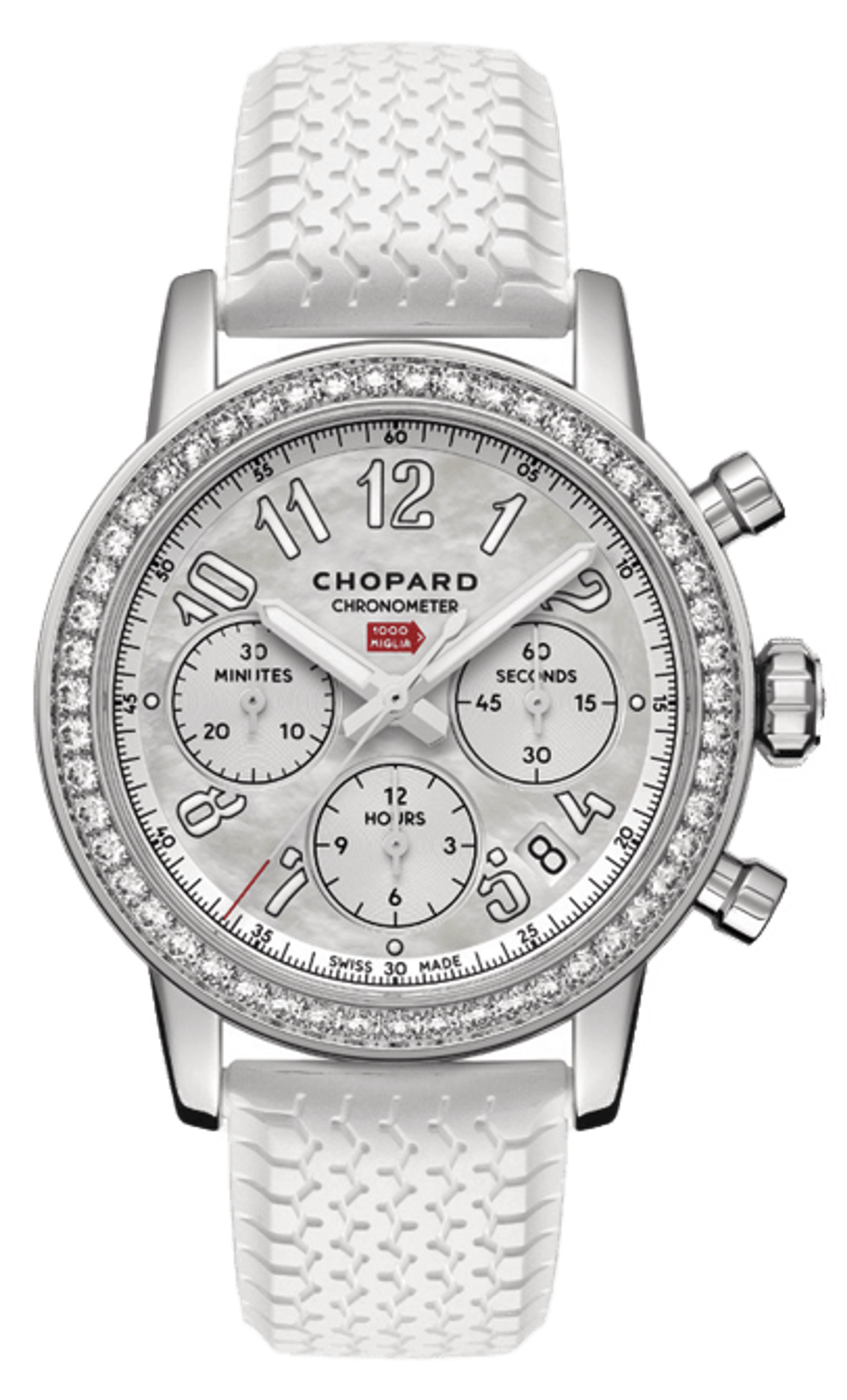 Женские автоматические часы, корпус – сталь Lucent Steel™, 39 мм Ремешок - каучук Циферблат - натуральный перламутр Общий вес бриллиантов - 1,51 карата