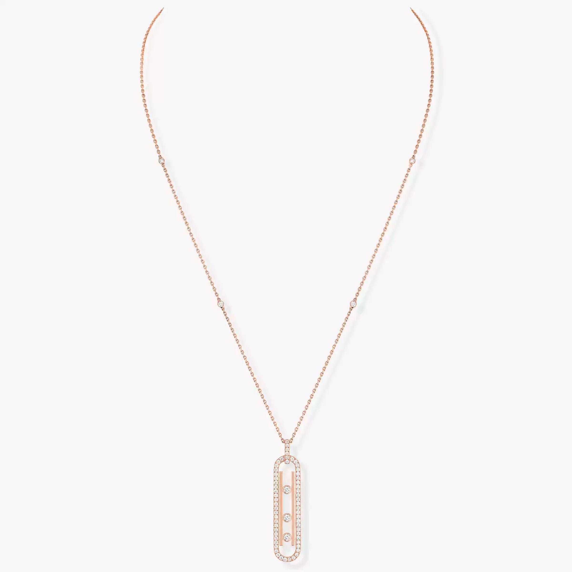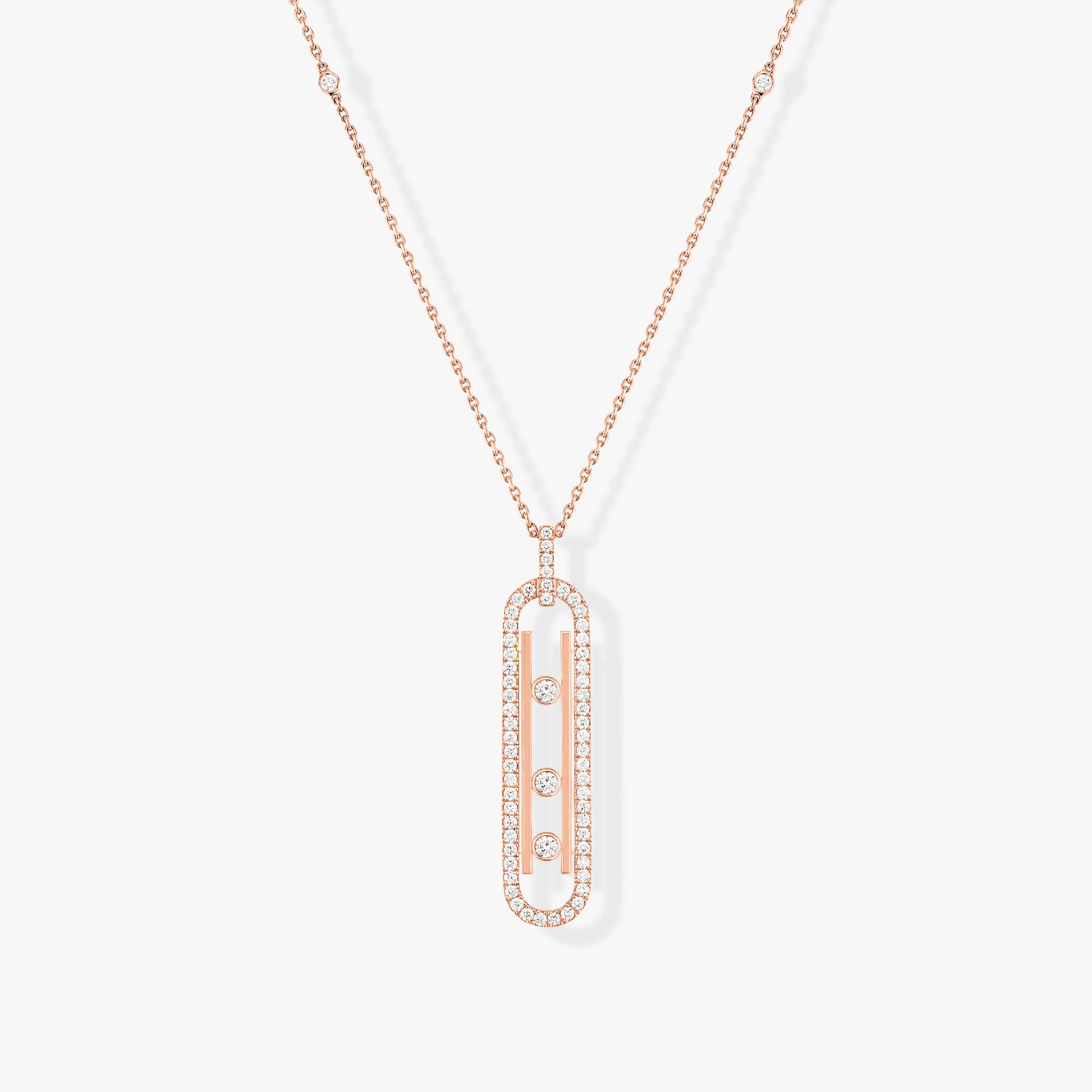 Ожерелье из розового золота 18K. Общий вес бриллиантов - 0,74 карата, качество G / VS. Длина цепочки: 80 см (регулируемая). Длина элемента: 40 мм. Ширина элемента: 9 мм.