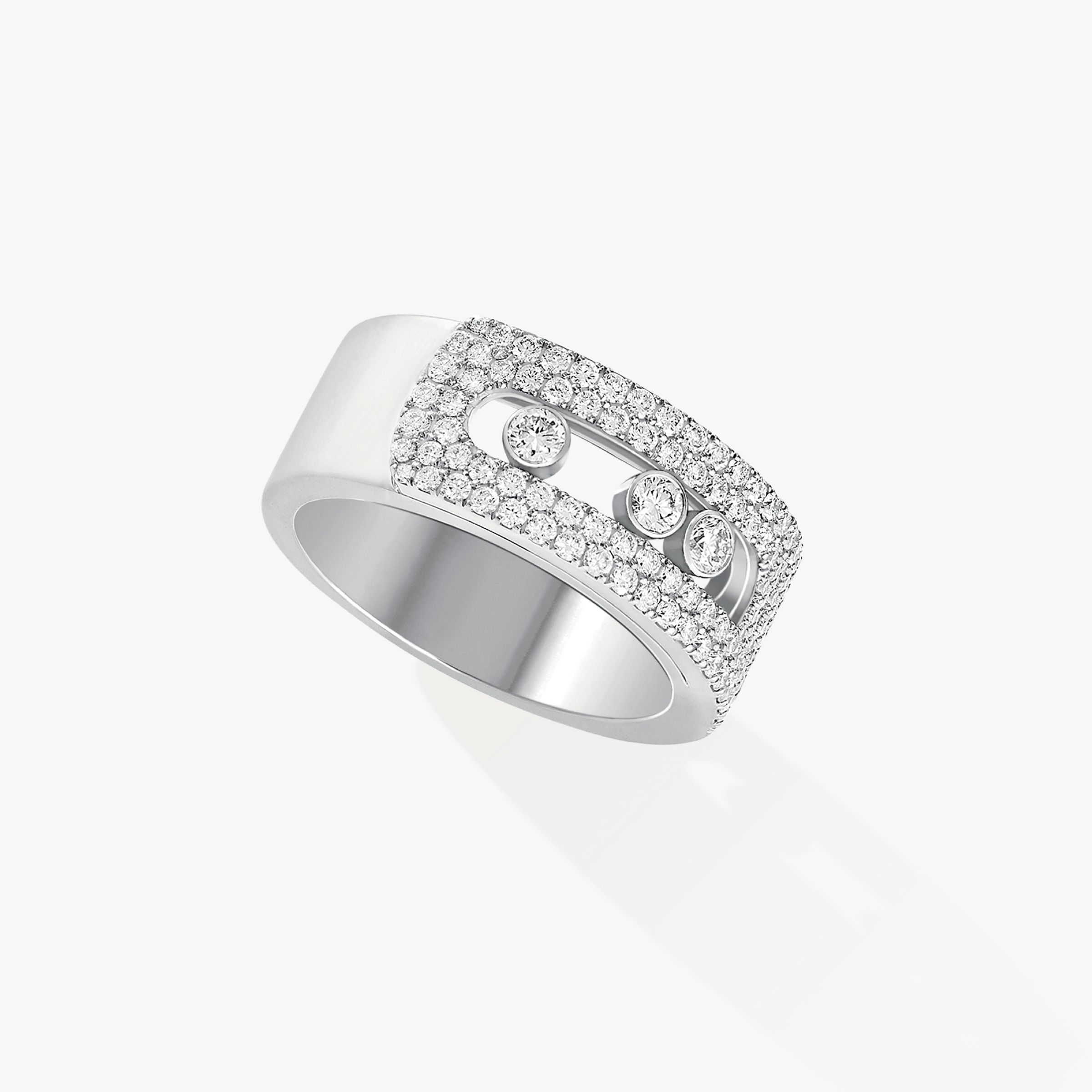 Кольцо из белого золота 18K. Общий вес бриллиантов составляет 0,73 карата, качество G/VS. Ширина: 8 мм.