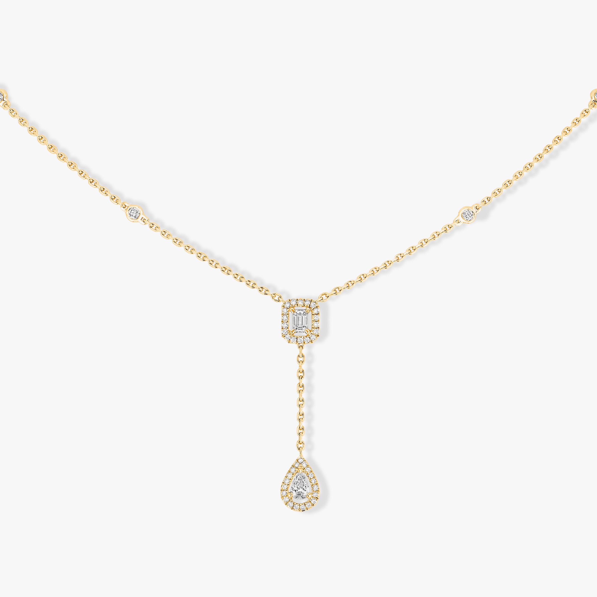 Подвеска из желтого золота 18К. Центральные камни: 0,10 карата каждый, качество F/VS. Общий вес бриллиантов: 0,35 карата, качество FG/VS.