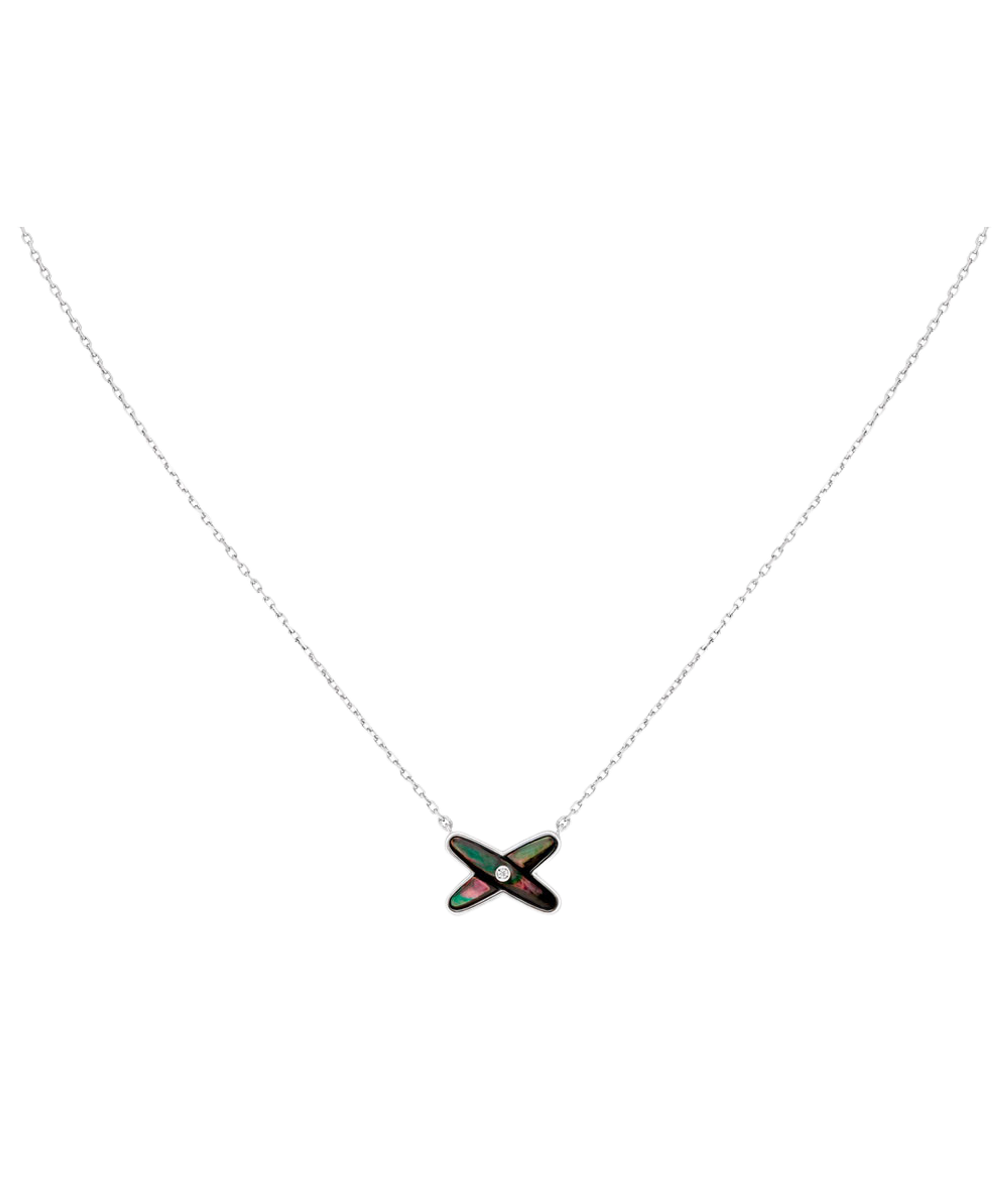 Ожерелье из белого золота 18K. Регулируемая длина цепочки - 39, 42 и 45 см. Общий вес бриллиантов - 0,01 ct, G, VS+, черный перламутр.