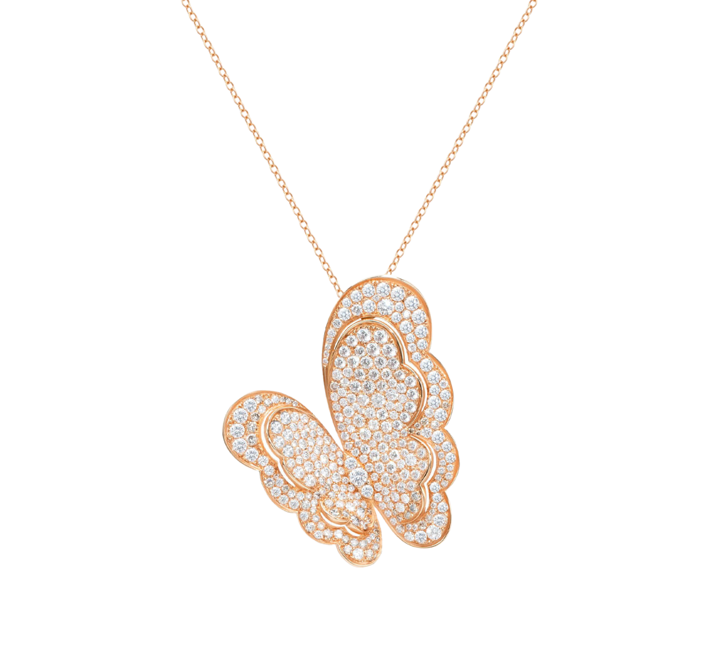 Подвеска из розового золота 18K в форме бабочки с бриллиантами.