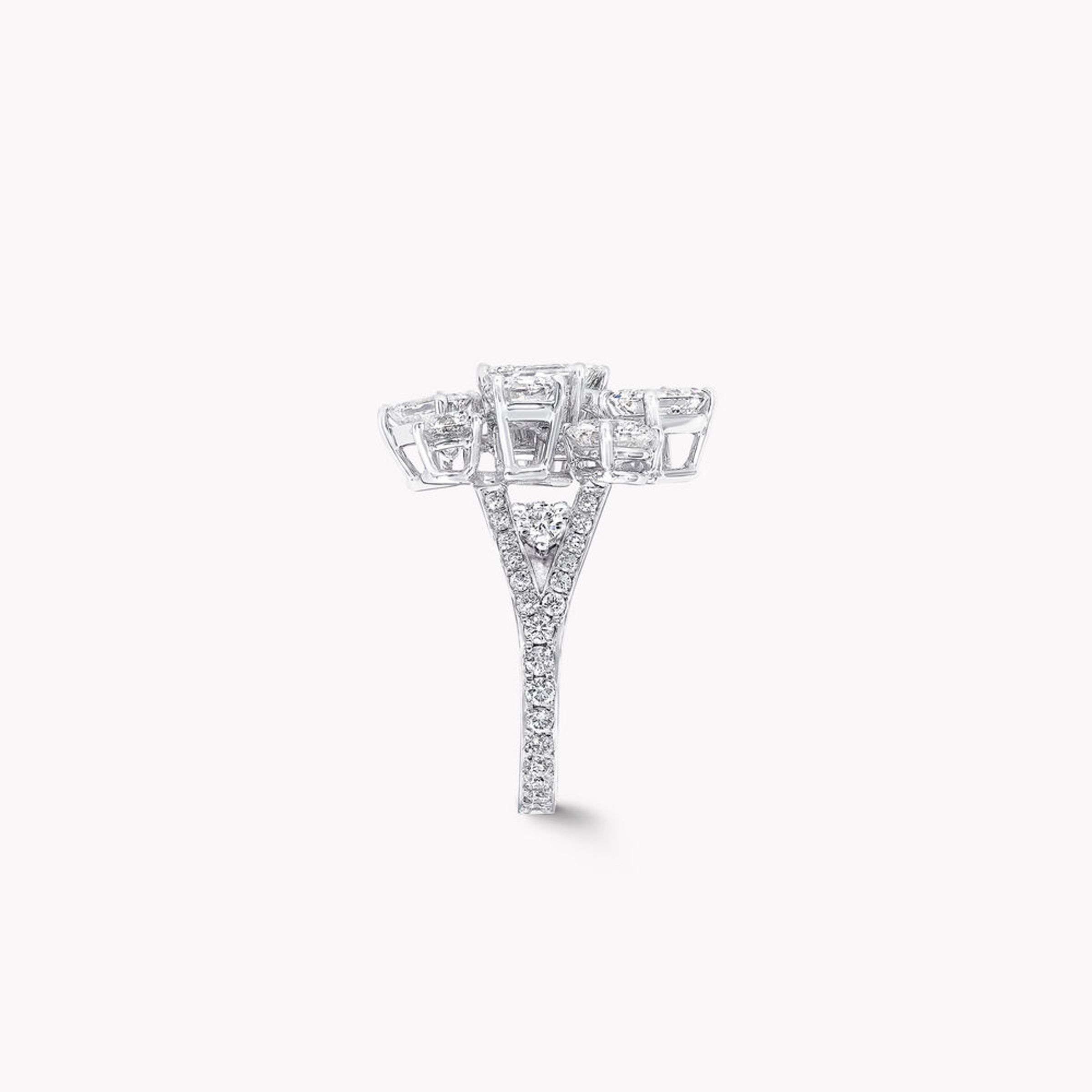 Кольцо из платины. 1 бриллиант (изумрудная огранка) - 1,01 карата G VVS2 GIA. Общий вес бриллиантов - 5,19 карата F VS+.