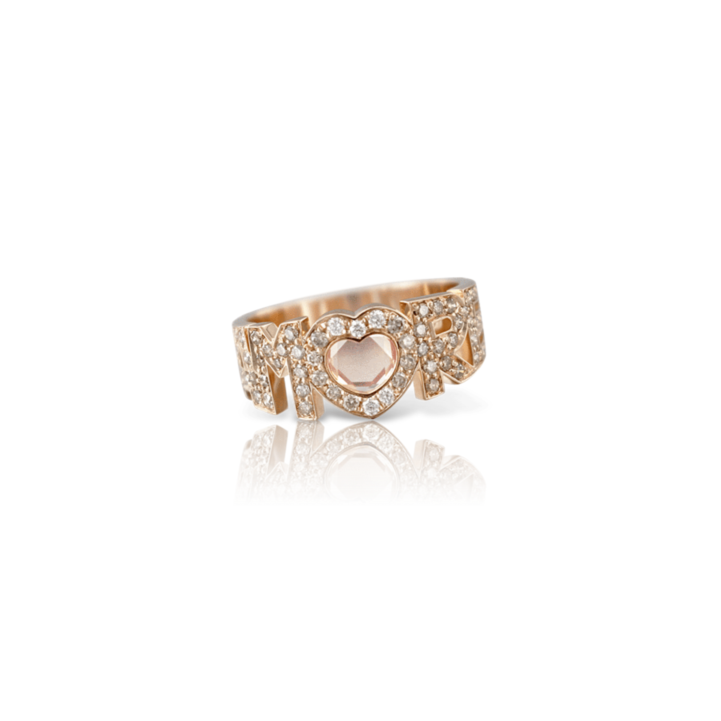Кольцо из розового золота 18K. Розовый кварц. Общий вес бриллиантов (белых и шампань) - 0,48 карата.