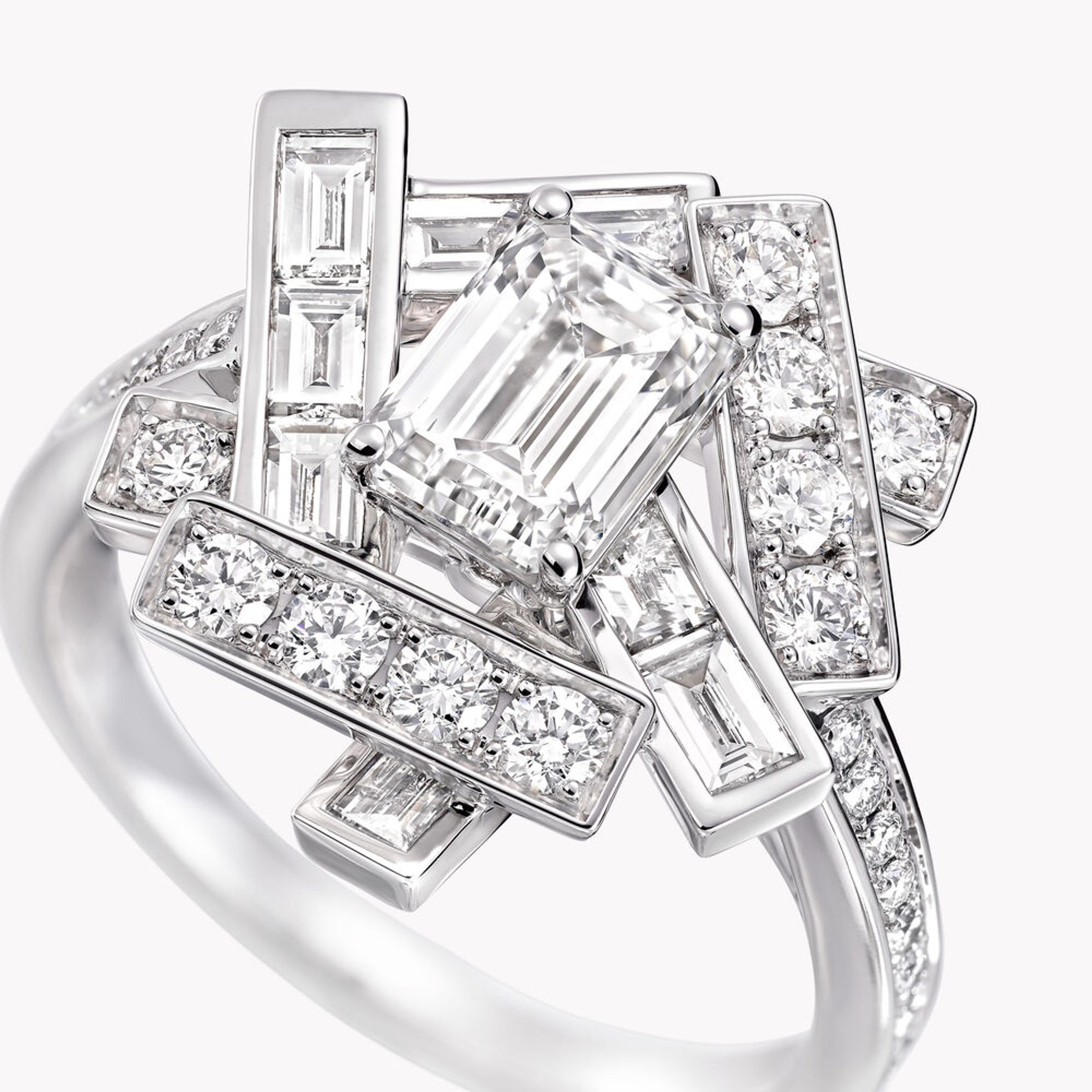 Кольцо из белого золота 18K Бриллиант (изумрудная огранка) - 1,01 ct F VVS2 GIA Вес бриллиантов - 1,15 ct F VS+