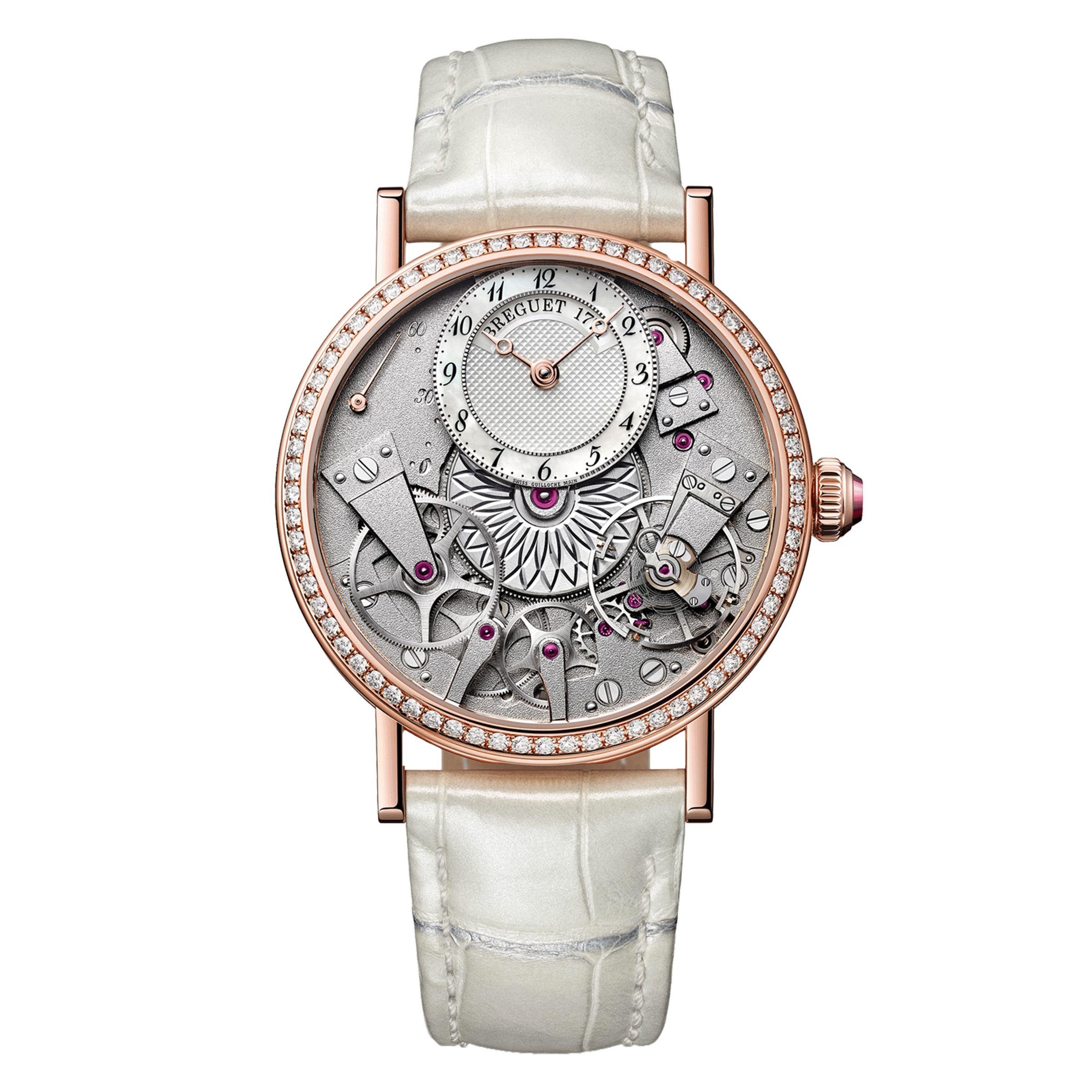 Женские автоматические часы, корпус - розовое золото 18K, 37 мм. Общий вес бриллиантов - 0,89 карата. Ремешок - аллигатор.
